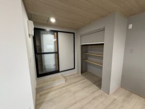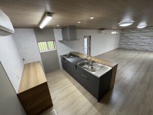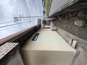 パントリーの設置や掃き出し窓からの出入り用に人工木ウッドデッキの設置、