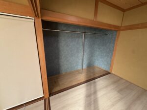 押入はオープンで使うとの事で、中段棚・枕棚を撤去してハンガーパイプを取付しました。