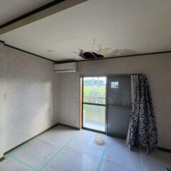 その後、雨漏りが無いことを確認し、室内天井の石膏ボードを新しく張り替えて、明るいビニールクロス仕上げに。