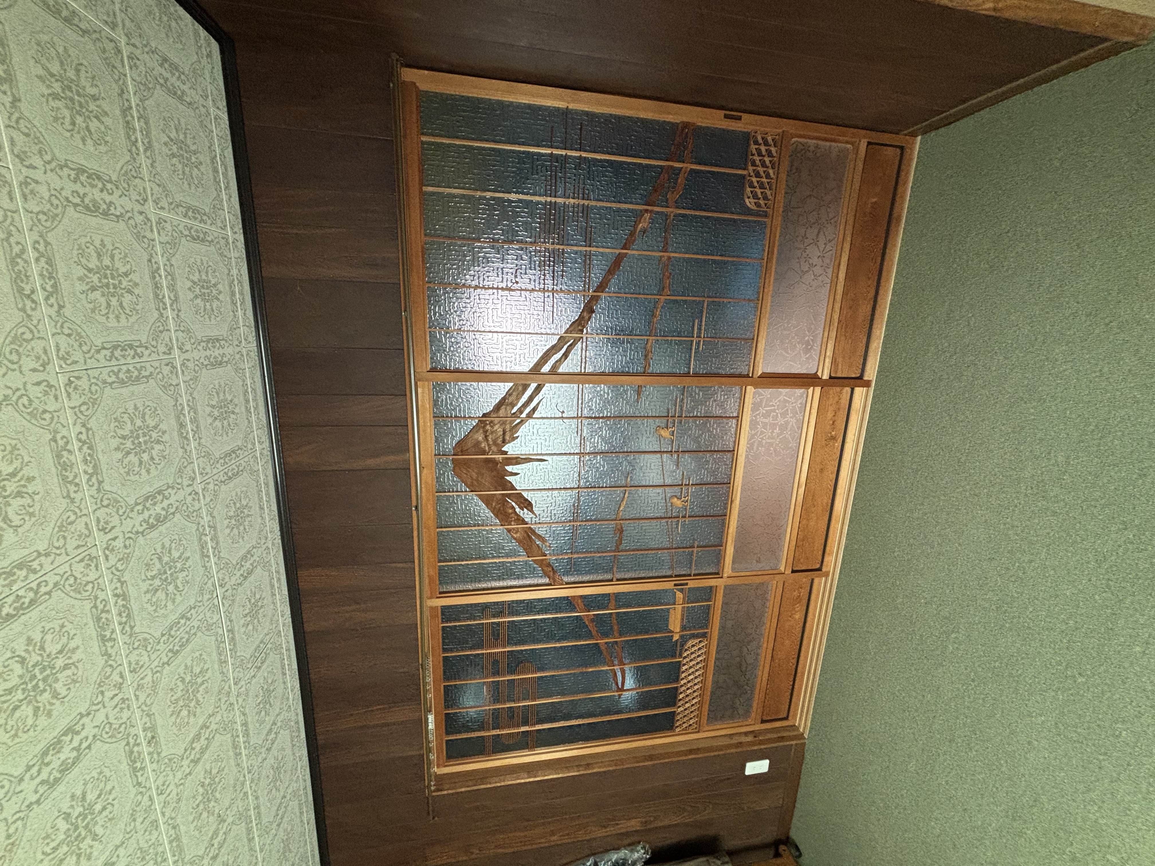 既存のアルミ製建具を撤去し、お母屋で使用していたお気に入りの建具を加工・再利用。